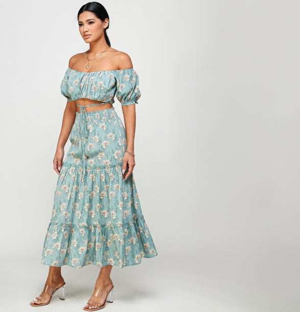 Square Neck Top and Skirt Swim Set