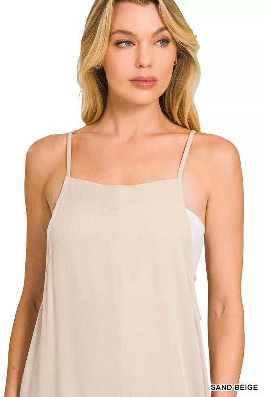 Tie Shoulder Romper with Front Pockets