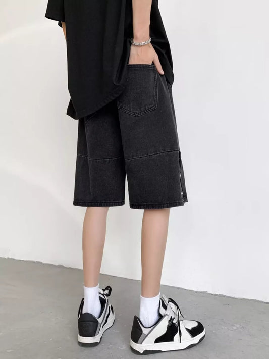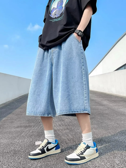 Men's Plus Size Vintage Wash Wide Leg Denim Shorts