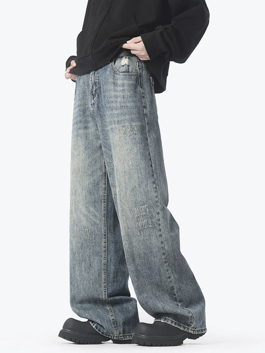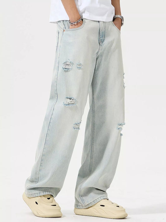 Men's Full Size Distressed Wide Leg Jeans Plus Size