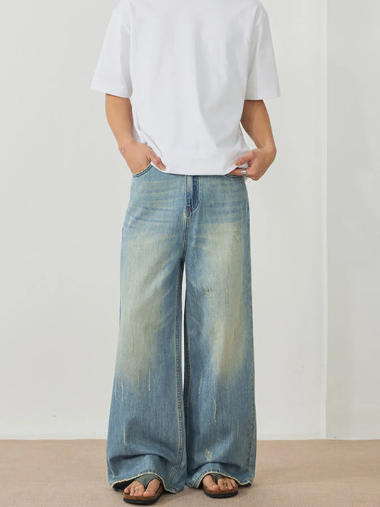 Men's Full Size Wash Wide Leg Jeans Plus Size