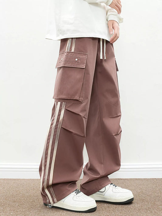 Men's Plus Size Casual Loose Cargo Pants with Side Stripes