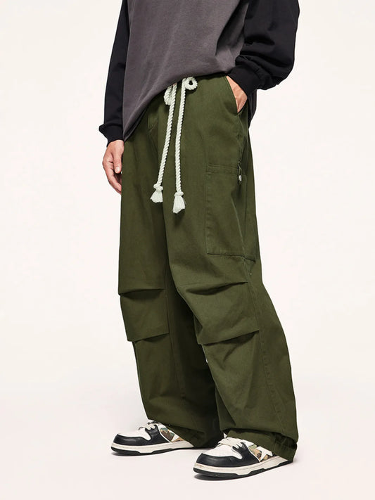 Men's Full Size Wide Leg Pleated Drawstring Casual Pants Plus Size