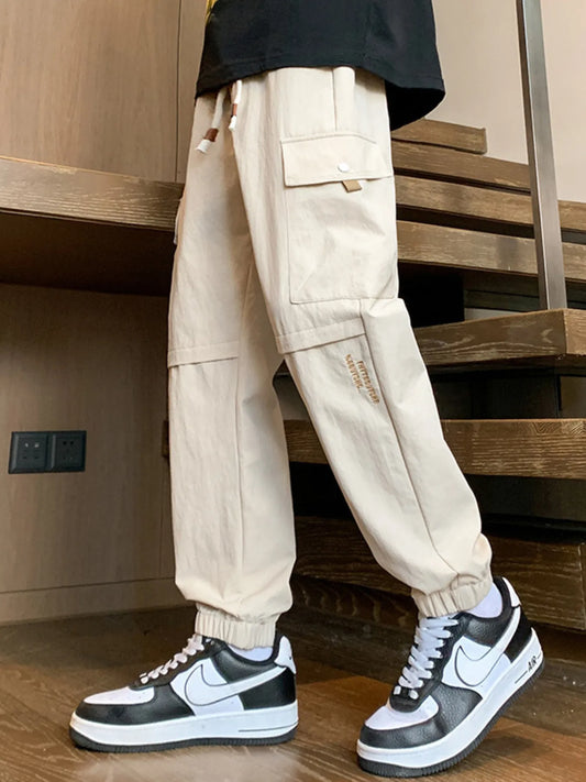 Men's Plus Size Casual Cargo Pants with Drawstring Waist