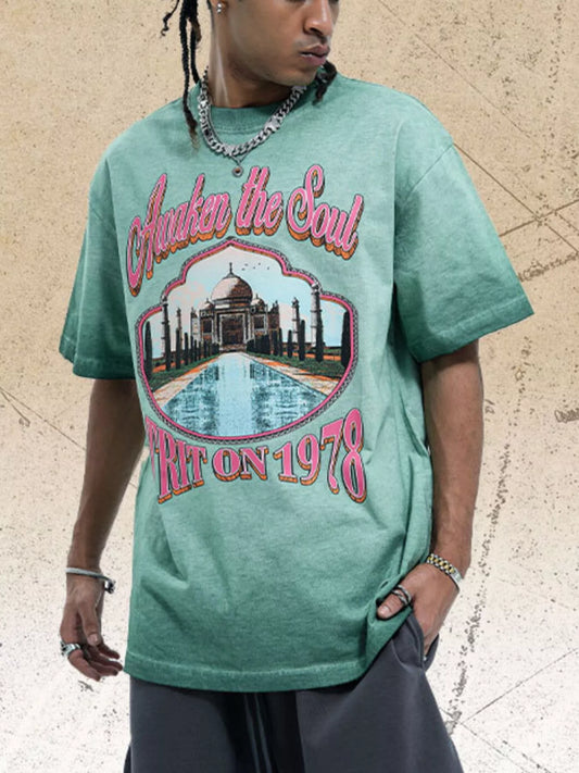 Men's Vintage Graphic Round Neck Oversized T-Shirt