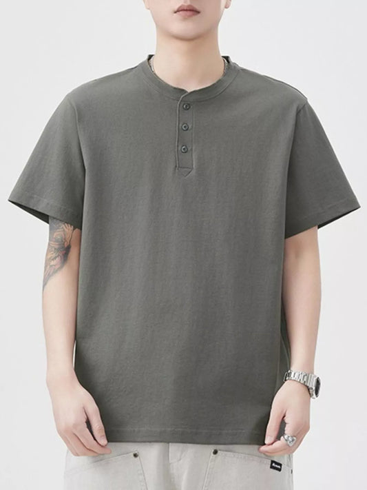 Men's Plus Size Casual Button-Detail Henley T-Shirt