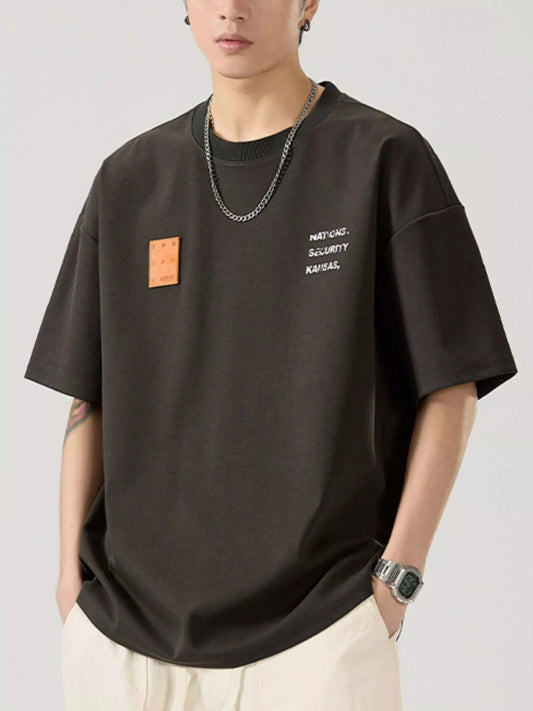 Men's Letter Round Neck Short Sleeve T-Shirt