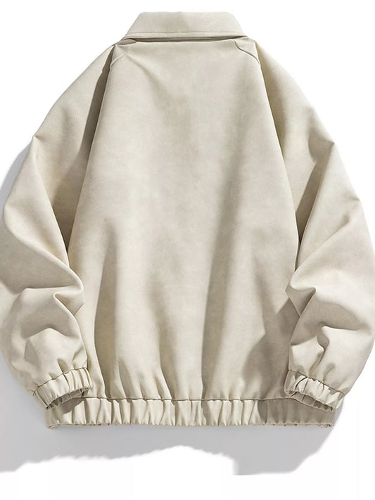 Men's Plus Size Zip Up Faux Leather Bomber Jacket
