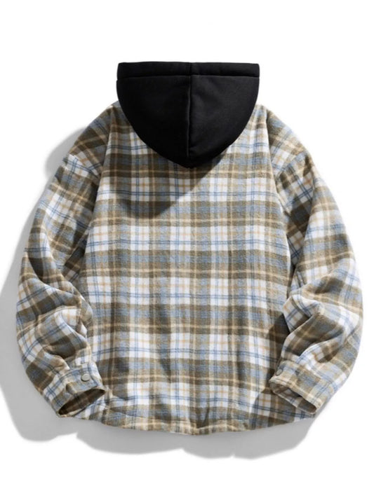 Men's Plus Size Drawstring Hooded Plaid Shirt Jacket