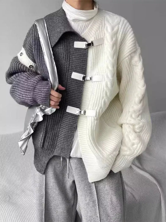 Men's Plus Size Two-Tone Buckle Closure Knit Cardigan