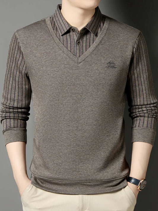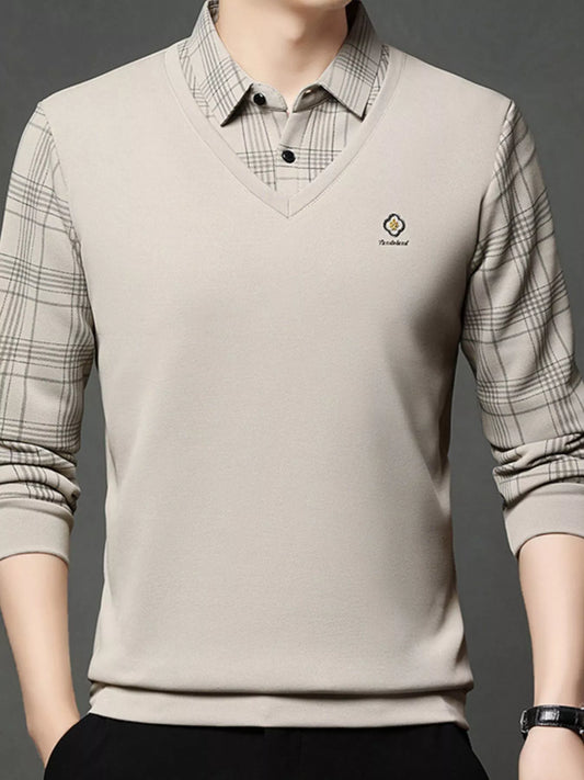 Men's Plus Size Layered-Look Long Sleeve Polo