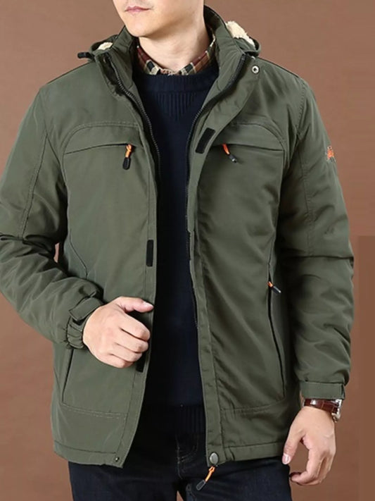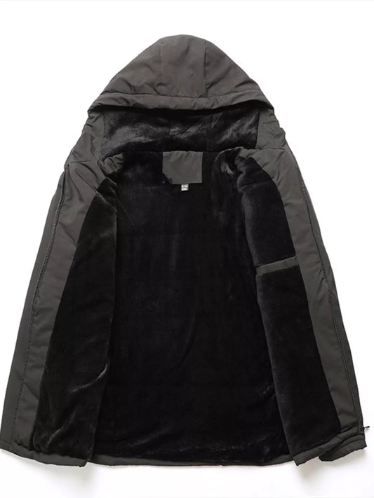 Men's Plus Size Warm Fleece Lined Hooded Jacket