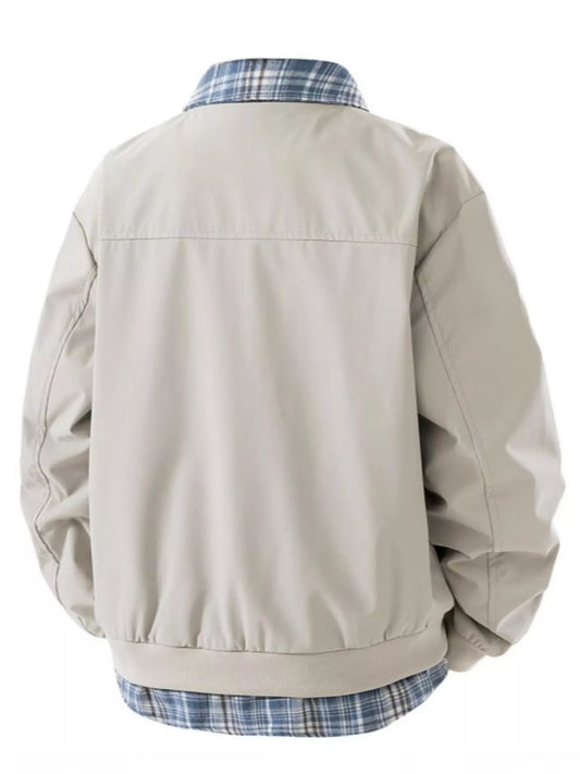 Men's Plus Size Plaid Trim Long Sleeve Jacket