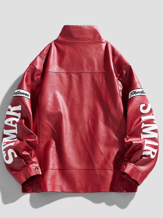 Men's Plus Size Faux Leather Zip Up Jacket