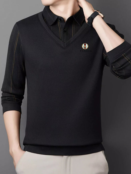 Men's Plus Size Layered Style Long Sleeve Polo
