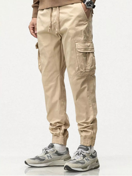 Men's Full Size Casual Cargo Pants with Drawstring Waist Plus Size