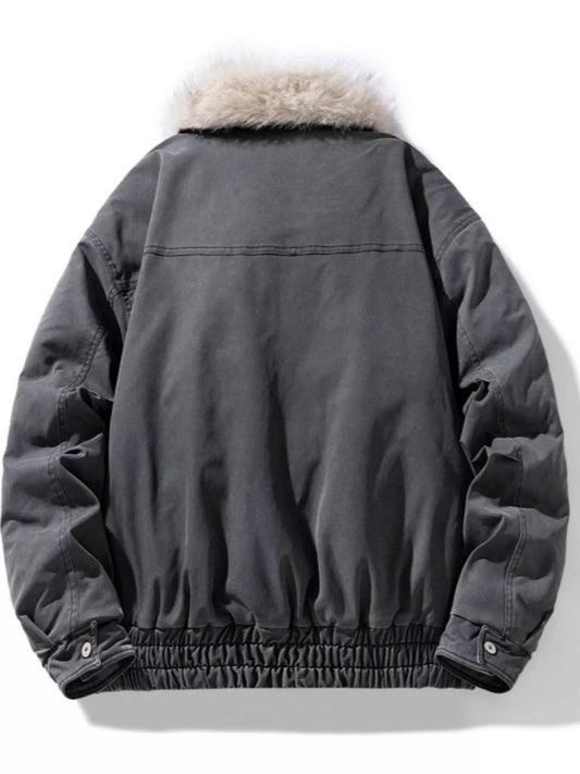 Men's Full Size Fur Collar Zip Up Bomber Jacket Plus Size