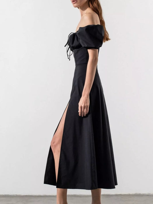 Slim-Fit Elegant Midi Dress with Beaded Slit Sleeve
